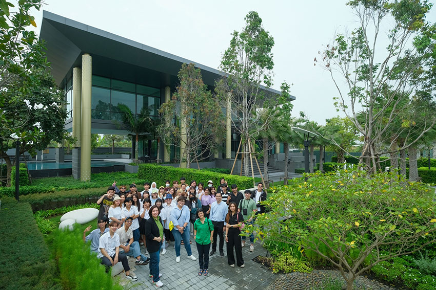 โดยนิสิตได้เยี่ยมชม และเรียนรู้การออกแบบโครงการบ้านเดี่ยวระดับพรีเมียม ได้แก่ โครงการเดอะปาล์ม บางนา-วงแหวน และ โครงการทาวน์เฮาส์ เดอะ คอนเนค บางนา-วงแหวน รวมถึงการออกแบบจัดสวนบำบัดเสริมสร้างสุขภาวะกายและใจ เพื่อสร้างสมดุลชีวิตที่ดี ผ่านการกระตุ้นประสาทสัมผัสทั้ง 7 (7 Senses Therapeutic Garden) ที่ประกอบด้วย 1) การมองเห็น 2) การได้ยิน 3) การรับกลิ่น 4) การรับรส 5) การสัมผัส 6) การรับรู้การเคลื่อนไหวการทรงตัว และ 7) การรู้ระยะตำแหน่งท่าทางในพื้นที่ ในโครงการ "เดอะปาล์ม" พร้อมทั้งเรียนรู้การออกแบบศูนย์ดูแลและฟื้นฟูสุขภาพสำหรับครอบครัวและผู้สูงอายุ “วิมุต เวลเนส” ด้วย