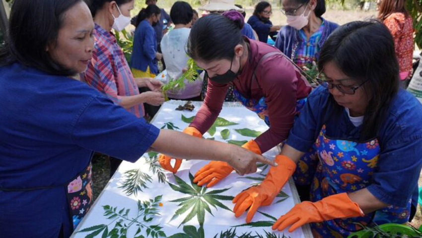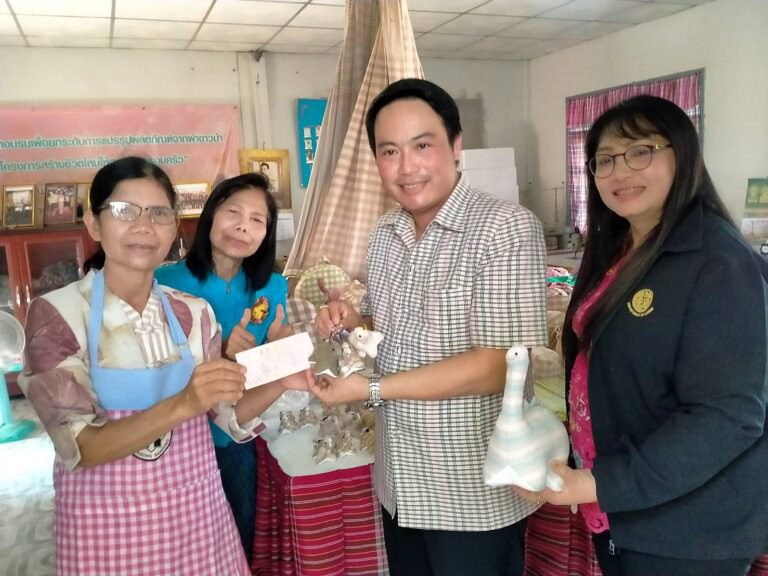 นางกันยา สังฆะสี ประธานกลุ่มวิสาหกิจชุมชนตัดเย็บบ้านดง กล่าวว่า กลุ่มของเรานั้นประกอบไปด้วยชาวบ้านจำนวน 40 กว่าคน มีทั้งกลุ่มทอผ้า กลุ่มเย็บผ้า และกลุ่มที่ทำผลิตภัณฑ์ขาย ซึ่งปัจจุบันมีสินค้าที่หลากหลายรูปแบบไม่กว่าจะเป็นพวงกุญแจของที่ระลึกรูปไดโนเสาร์ กระเป๋า หมวก ผ้าขาวม้า ผ้าพันคอ เสื้อหรือชุดผ้าไหม / ผ้าฝ้าย ซึ่งในปัจจุบัน ทางกลุ่มได้สนใจที่จะนำเอานวัตกรรม Eco-print ผ้าย้อมสีใบไม้ มาเพิ่มมูลค่าให้กับสินค้าของกลุ่มที่มีอยู่ แต่ยังขาดความรู้ เทคนิค กรรมวิธีที่ถูกต้อง ซึ่งการที่มหาวิทยาลัยขอนแก่นเข้ามาส่งเสริมความรู้ในครั้งนี้ ทำให้ทางกลุ่มเองได้มีความรู้และได้นำเอาผลิตภัณฑ์ใหม่ที่ได้ไปทดลองขายและได้รับผลตอบรับจากลูกค้าเป็นอย่างดี