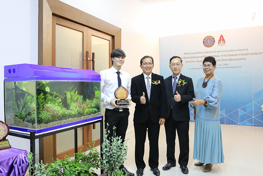 มหาวิทยาลัยขอนแก่น ร่วมกับกรมประมง บันทึกความเข้าใจว่าด้วยความร่วมมือทางวิชาการว่าด้วย การพัฒนาวิชาการด้านการเรียนการสอน การวิจัยและการบริการวิชาการ โดยลงนามระหว่าง รองศาสตราจารย์ นายแพทย์ชาญชัย พานทองวิริยะกุล อธิการบดีมหาวิทยาลัยขอนแก่น และ นายเฉลิมชัย สุวรรณรักษ์ อธิบดีกรมประมง ทั้งนี้มี ผู้บริหาร ทั้งสองหน่วยงานร่วมงานจำนวนมาก ณ ห้องประชุมสารสิน อาคารสิริคุณากร มหาวิทยาลัยขอนแก่น