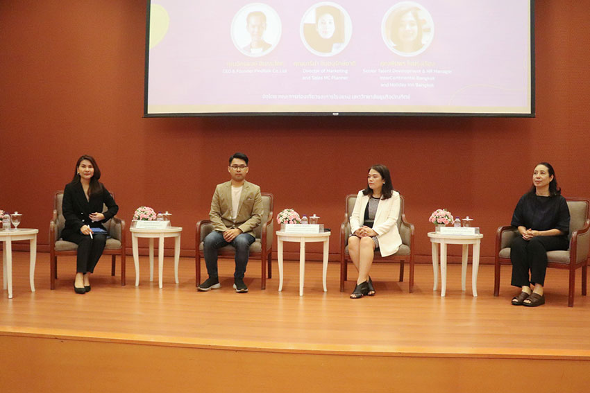 โดยได้เชิญผู้ประกอบการที่มีชื่อเสียงในอุตสาหกรรมท่องเที่ยว โรงแรม และไมซ์ ซึ่งเป็นผู้จ้างงานโดยตรง ประกอบด้วย คุณสรรพวัต กันตามระ ผู้จัดการฝ่ายการตลาดเชิงกลยุทธ์และความยั่งยืน บริษัท ฟายด์ โฟลด์ จำกัด ตัวแทนธุรกิจนำเที่ยว คุณพิมพร ไชยรุ่งเรือง Senior Talent Development & HR Manager, Intercontinental Bangkok and Holiday Inn Bangkok ตัวแทนธุรกิจโรงแรม และคุณมารีน่า ชินอนุรักษ์ชาติ Director of Marketing and Sales, MC Planner ตัวแทนธุรกิจไมซ์ มาเล่าถึงสถานการณ์ที่ผ่านมาและแนวทางการดำเนินงานของธุรกิจในปัจจุบันและอนาคต รูปแบบการจ้างงาน ตลอดจนความต้องการผู้เข้าทำงาน ในด้านความรู้ ทักษะ คุณสมบัติ และคุณลักษณะต่างๆ