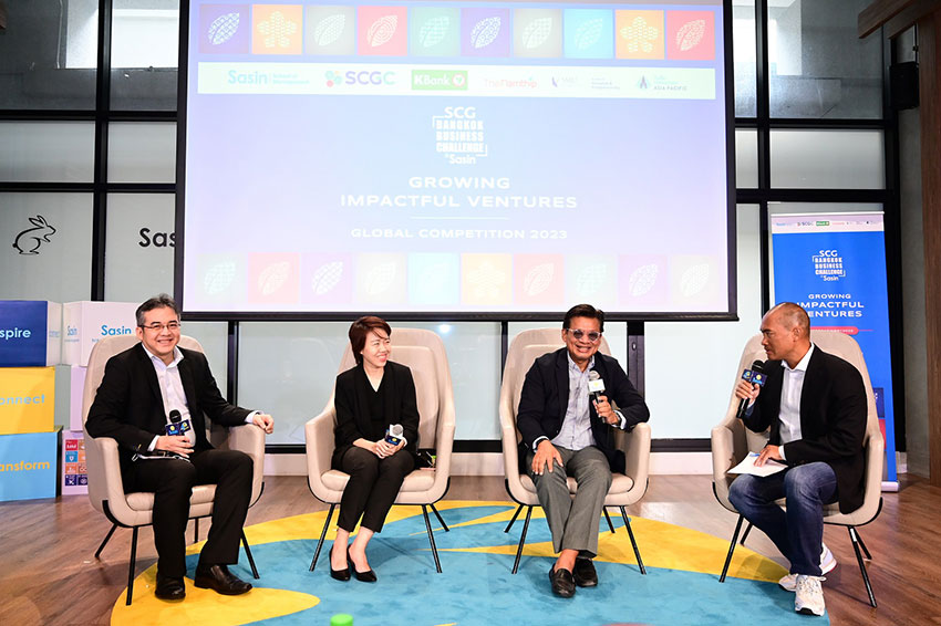 ดร.สุรชา อุดมศักดิ์ รองผู้จัดการใหญ่ และประธานเจ้าหน้าที่สายงานนวัตกรรม บริษัท เอสซีจี เคมิคอลส์ จำกัด (มหาชน) หรือ SCGC กล่าวถึงการแข่งขันนี้ว่า “SCG Bangkok Business Challenge @ Sasin เป็นการแข่งขันระดับนานาชาติที่มุ่งสร้างเครือข่ายและให้ความสำคัญกับการสร้างธุรกิจใหม่ ๆ เพื่อขับเคลื่อนเศรษฐกิจทั้งในระดับภูมิภาคและระดับโลก SCGC ร่วมสนับสนุนโดยมีเป้าหมายผลักดันผู้ประกอบการสตาร์ตอัปให้เติบโตสอดคล้องกับเมกะเทรนด์โลกและหลัก ESG (Environmental, Social and Governance) ด้วยแนวคิดนวัตกรรมและโซลูชันที่เป็นมิตรกับสิ่งแวดล้อม (Green Innovations & Solutions) อีกทั้งเพิ่มพูนทักษะให้สามารถก้าวไปเทียบในระดับสากลได้ ผ่านการแลกเปลี่ยนเรียนรู้การทำแผนธุรกิจทั้งระดับประเทศไทยและระดับสากล ที่ผ่านมา SCGC ได้เปิดโอกาสให้ทีมสตาร์ตอัปชนะเลิศ และรองชนะเลิศ จากการแข่งขันฯ เข้าพัฒนาต่อยอดนวัตกรรมและโซลูชันที่ศูนย์นวัตกรรม “i2P” (Ideas to Products) ศูนย์รวมไอเดียเพื่อสร้างสรรค์นวัตกรรมที่ตอบโจทย์ความต้องการของทั้ง ลูกค้า–ผู้บริโภค–สิ่งแวดล้อม เปิดโอกาสให้ได้ร่วมพัฒนาสินค้าและเทคโนโลยีกับเครือข่ายพันธมิตรของ SCGC เพื่อให้สตาร์ตอัปมีทักษะและมุมมองในการสร้างนวัตกรรมที่พร้อมใช้งานจริง สามารถขยายธุรกิจและมีการเข้าถึงการตลาดเพิ่มมากขึ้น ปลดล็อกศักยภาพสตาร์ตอัปไทย ให้ก้าวไกลไปในระดับสากล”