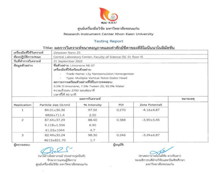นายเรวัต จินดาพล CEO บริษัท เคเคยู มิสลิลลี่ โฮลดิ้ง จำกัด (KKU Miss Lily Holding Co.,Ltd.) เปิด เผยว่า “จากการทํางานร่วมกับมหาวิทยาลัยขอนแก่นอย่างใกล้ชิดตลอดระยะเวลาที่ผ่านมา บริษัทได้มุ่งเน้นในการพัฒนาเทคโนโลยีนาโนอิมัลชั่น โดยเริ่มตั้งแต่ต้นน้ำจนถึงปลายน้ำ เพื่อให้เราได้มี Technical know how ในการพัฒนาผลิตภัณฑ์ต้นแบบในห้องปฏิบัติการ จนสามารถนำไปสู่การผลิตในเชิงอุตสาหกรรมได้อย่างมีประสิทธิภาพ ซึ่งการผลิตในเชิงอุตสาหกรรมนั้น จะต้องใช้เครื่องจักรที่สามารถทำให้สารแตกตัวเป็นอนุภาคระดับนาโน โดยทั่วไปในต่างประเทศจะใช้เครื่อง High pressure nano homogenizer ซึ่งจะมีราคาแพงมาก เช่น ขนาด 300-500 ลิตร จะมีราคาหลักร้อยล้านบาท ทำให้อุตสาหกรรมทั่วไปมีข้อจำกัดในการลงทุนเครื่องจักรเหล่านี้ ทางทีมวิศวกรของบริษัท ลิลลี่ ฟาร์มา ซึ่งเป็นบริษัทลูกของ KKU Miss Lily Holding ได้พัฒนาเครื่องจักรในรูปแบบ High speed nano homogenizer และเครื่องจักรพ่วง จนทำให้เราเป็นผู้นำในการผลิตเครื่องจักรนาโนอิมัลชั่นในกลุ่มอาเซียน เรามีนโยบายที่จะนำเครื่องจักรนี้ไปร่วมมือกับภาคเอกชนในอุตสาหกรรมต่างๆ ที่ต้องการสร้างผลิตภัณฑ์ให้อยู่ในรูปแบบนาโนอิมัลชั่น โดยบริษัท ลิลลี่ ฟาร์มา จะช่วยพัฒนาผลิตภัณฑ์ให้อยู่ในรูปแบบนาโนอิมัลชั่นและนำไปสู่การผลิตในเชิงอุตสาหกรรม โดยการสนับสนุนของทางบริษัทและมหาวิทยาลัยขอนแก่น เพื่อให้ประเทศไทยได้กลาย เป็นผู้นำทางด้านเทคโนโลยีนี้ ซึ่งสามารถสร้างมูลค่าเพิ่มได้ในทางเศรษฐกิจ สำหรับองค์กรที่สนใจสามารถติดต่อ บริษัท ลิลลี่ ฟาร์มา จำกัด คุณศิรินทร์ ใต้ชัยภูมิ โทร. 086-319-0270