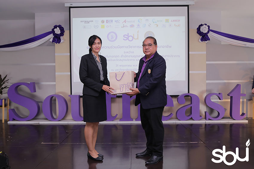 มหาวิทยาลัยเซาธ์อีสท์บางกอก (Southeast Bangkok University-SBU) โดยการนำของ ดร.สมศักดิ์ รุ่งเรือง อธิการบดี และประธานสมาคมสถาบันอุดมศึกษาเอกชนแห่งประเทศไทยฯ (สพร.) ได้ทำการลงนามบันทึกข้อตกลงความร่วมมือทางด้านวิชาการและการพัฒนาอาชีพ ร่วมกับสำนักงานอุตสาหกรรมจังหวัดสมุทรปราการ สำนักงานพาณิชย์จังหวัดสมุทรปราการ และ 25 บริษัทซึ่งเป็นสถานประกอบการชั้นนำ เมื่อเร็วๆนี้ ณ ห้องประชุมอาคารเฉลิมพระเกียรติ 7 รอบ สถานที่ตั้งบางนา