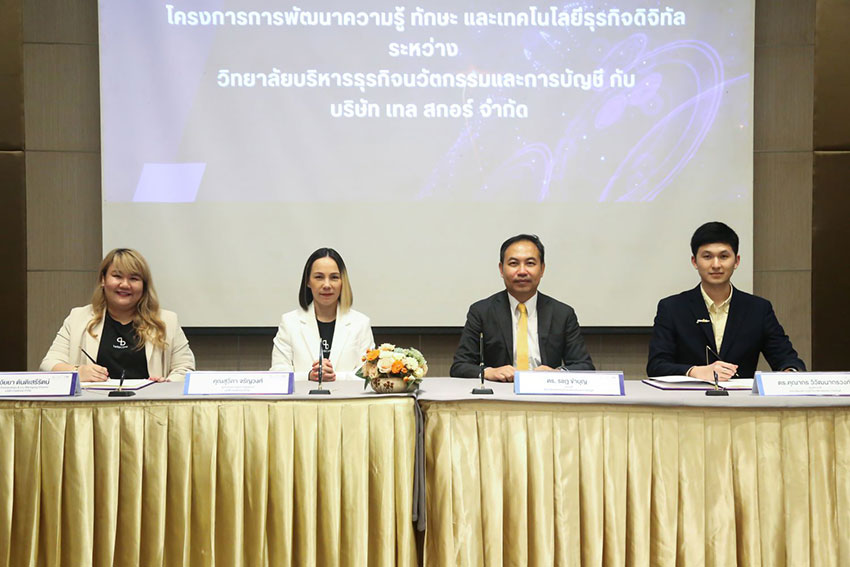 ด้าน นางสาวสุวิตา จรัญวงศ์ Co-Founder & CEO บริษัท เทล สกอร์ จำกัด กล่าวต่อความร่วมมือในครั้งนี้ว่า เทล สกอร์ มีต้นทุน 2 ด้าน คือ ด้านเทคโนโลยีซึ่งเป็นแพลตฟอร์มของเทลสกอร์เอง โดยใช้ AI และBig data รวมถึงนวัตกรรมด้านการจัดการในรูปแบบ Martech รุ่นใหม่ อีกด้านจะเป็นมิติของคน คือ บุคลากรของเราถือว่าเป็นผู้ที่มีประสบการณ์ด้าน Marketing ซึ่งบุคคลเหล่านี้จะมาร่วมแชร์ความรู้ด้านเทคโนโลยี แชร์ Know-how information รวมถึงเทคนิคต่างๆ อย่างเต็มที่ นอกจากนี้ยังจะมีกิจกรรมให้นักศึกษาได้ลงสนามจริง เพื่อฝึกประสบการณ์ในโลกของการเป็นอินฟลูเอนเซอร์ เนื่องจากการได้ลงมือปฎิบัติจริง นักศึกษาจะเห็นตัวแปรที่ทำให้ทฤษฎีจากห้องเรียนเปลี่ยนไป ซึ่งการฝึกจริงจะทำให้เกิดทักษะและมีความชำนาญมากขึ้น ถือเป็นการติดอาวุธทางด้านเทคโนโลยีเพื่อนำไปต่อสู้ในโลกความจริง
