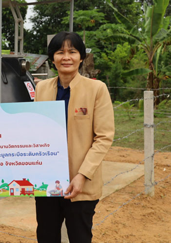 แก่ เทศบาลตำบลบ้านผือ อำเภอหนองเรือ จังหวัดขอนแก่น ช่วยชุมชนประหยัดค่าใช้จ่าย และใช้ประโยชน์จากวัสดุเศษเหลือภายใต้แนวคิดของเสียเป็นศูนย์ได้อย่างแท้จริง