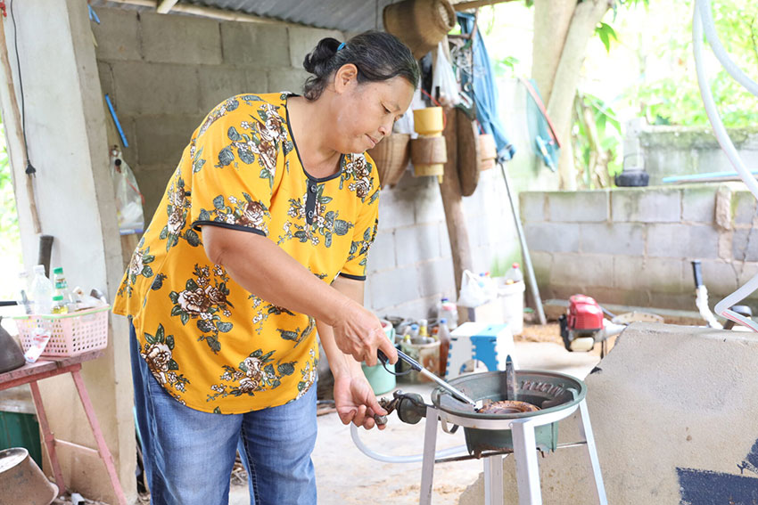 “มูลกระบือ 1 ถัง ใช้ทำกับข้าวได้ถึง 3 มื้อ ในบ้านอยู่กัน 2 คน ปกติซื้อแก๊สถัง LPG ที่ใช้หุงต้มทั่วไป 1 ถัง ถังละ 473 บาท ใช้ได้ 2 เดือน ตอนนี้ประหยัดไป 3 ถัง คิดเป็นเงินกว่า 1,000 บาท รู้สึกดีใจมากที่มหาวิทยาลัยขอนแก่นนำนวัตกรรมนี้เข้ามาให้ได้ใช้แบบนี้”