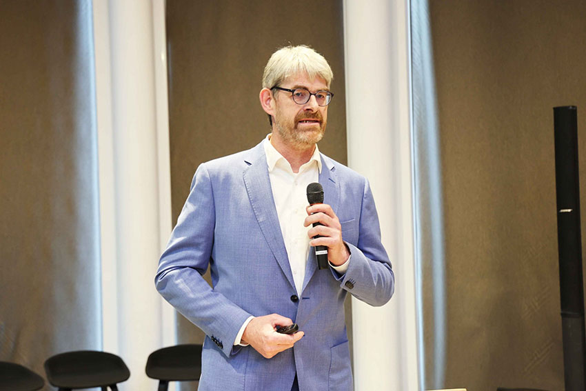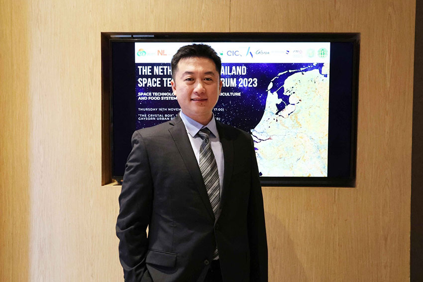นายแร็มโก ฟัน ไวน์คาร์เดิน (Remco van Wijngaarden) เอกอัครราชทูตเนเธอร์แลนด์ประจำประเทศไทย กล่าวว่า ‘วิทยาศาสตร์ภูมิสารสนเทศ’ มีความสำคัญมากขึ้นในชีวิตประจำวันของเรา การวางแผนการเดินทาง พยากรณ์อากาศ และอื่นๆ ข้อมูลเชิงพื้นที่กลายเป็นสิ่งจำเป็นสำหรับหลายภาคส่วน เช่น เกษตรกรรม การวางผังเมือง การจัดการทรัพยากร (ป่าไม้ น้ำ แร่ธาตุ) และเพื่อการออกแบบระบบที่จะลดผลกระทบของการเปลี่ยนแปลงสภาพภูมิอากาศ (Climate Change) และภัยพิบัติ อันเป็นความท้าทายของโลกปัจจุบัน เช่น อุณหภูมิที่สูงขึ้น ภัยแล้ง น้ำท่วม การตัดไม้ทำลายป่า การสูญเสียความหลากหลายทางชีวภาพ มลภาวะทางอากาศ ฯลฯ ล้วนเกิดขึ้นพร้อมๆ กัน และต้นกำเนิดและผลที่ตามมามักจะทับซ้อนกันทางภูมิศาสตร์ วิทยาศาสตร์ภูมิสารสนเทศช่วยให้เราเข้าใจความสัมพันธ์ที่ซับซ้อนได้ดีขึ้น ทั้งยังช่วยเราในการคิดค้นวิธีแก้ปัญหาและการตัดสินใจที่ดีขึ้นเพื่อสังคมและโลกอีกด้วย การประชุมเทคโนโลยีอวกาศเนเธอร์แลนด์ – ไทย 2023 ครั้งนี้ มุ่งเน้นไปที่การนำ ‘เทคโนโลยีอวกาศ’ เข้ามามีส่วนในการทำ ‘ระบบการเกษตรและอาหาร’ ที่มีความยืดหยุ่นคล่องตัวและยั่งยืนมากขึ้น ผู้เชี่ยวชาญด้านภูมิสารสนเทศจึงมีบทบาทสำคัญในการทำให้สิ่งเหล่านี้เกิดขึ้นได้