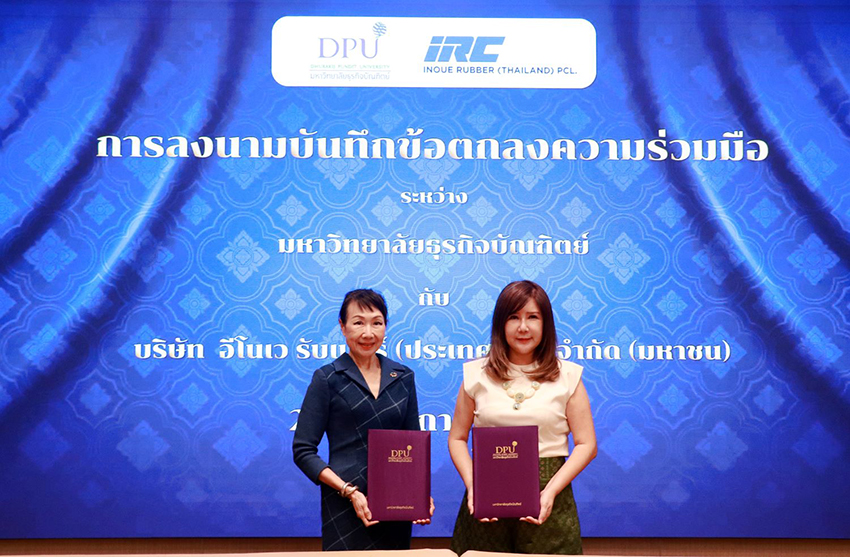 มหาวิทยาลัยธุรกิจบัณฑิตย์ (DPU) โดย ผศ.ดร.พัทธนันท์ เพชรเชิดชู รองอธิการบดีสายงานวิชาการและรองอธิการบดีสายงานวิจัยและพัฒนา พร้อมด้วย นางพิมพ์ใจ ลี้อิสสระนุกูล ประธานกรรมการบริหาร บริษัท อีโนเว รับเบอร์ (ประเทศไทย) จำกัด (มหาชน) หรือ IRC ร่วมลงนามบันทึกข้อตกลงความร่วมมือทางวิชาการ (MOU) ในโครงการการจัดทำคาร์บอนฟุตพริ้นท์สำหรับผลิตภัณฑ์ โดยมีวัตถุประสงค์เพื่อพัฒนาความรู้และประสบการณ์ในกระบวนการกิจกรรมการลดก๊าซเรือนกระจกและการเปลี่ยนแปลงสภาพภูมิอากาศ เพื่อส่งเสริมสังคมคาร์บอนต่ำและการพัฒนาองค์กรอย่างยั่งยืน โดยมี ผศ.ดร. ศิริเดช คำสุพรหม คณบดีวิทยาลัยนานาชาติ DPU พร้อมด้วย รศ.ดร.นิตย์ เพ็ชรรักษ์ นักวิจัยอาวุโส ดร. รชฏ ขำบุญ คณบดีวิทยาลัยนวัตกรรมบริหารธุรกิจและการบัญชี (CIBA) และนายบัณฑร ศรีวงษ์จันทร์ ผู้จัดการฝ่ายวิศวกรรมและผู้จัดการสิ่งแวดล้อมและความปลอดภัย IRC ร่วมเป็นสักขีพยาน ณ ห้องประชุมสัจจา 1 มหาวิทยาลัยธุรกิจบัณฑิตย์ (DPU) เมื่อเร็วๆนี้