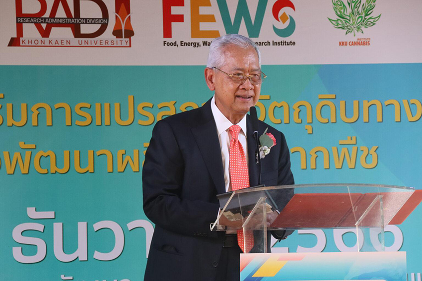 ขณะที่ ดร.ณรงค์ชัย อัครเศรณี นายกสภามหาวิทยาลัยขอนแก่น กล่าวว่า มหาวิทยาลัยขอนแก่น เล็งเห็นความสำคัญของการส่งเสริมการวิจัยที่มีผลงานดีเด่น เป็นประโยชน์แก่ประชาชน สังคม และประเทศชาติ จึงพัฒนาแพลตฟอร์มการแปรสภาพวัตถุดิบทางการเกษตร เพื่อพัฒนาผลิตภัณฑ์จากพืชขึ้น ในห้องปฏิบัติการต้นแบบที่มีขนาดใหญ่และได้รับมาตรฐานตามที่ อย.กำหนด พร้อมเตรียมพัฒนามาตรฐานในระดับสากลต่อไป