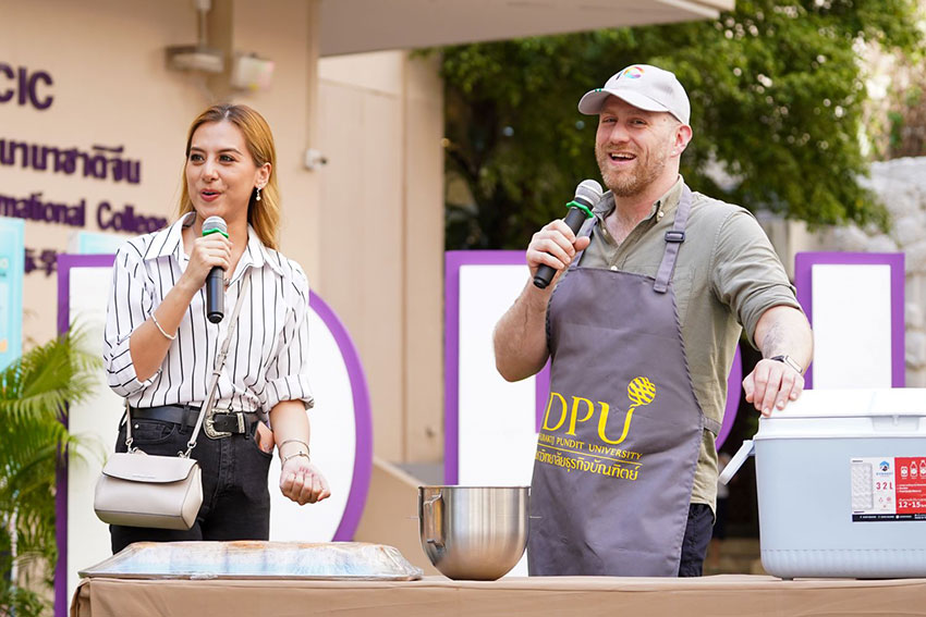 อีกหนึ่งกิจกรรม Thai Royal Dessert ที่นักศึกษาจะได้เรียนรู้ในความเป็นนานาชาติมากขึ้นผ่านเซเลบริตี้เชฟคนดังแห่งอังกฤษ สตีเวน คาร์เตอร์ เบลลีย์ (Steven-Carter Bailey) ผู้ได้รับรางวัลรองชนะเลิศจากรายการชื่อดัง Great British Bake Off ที่มาสอนและแนะนำเทคนิคการทำขนม Cupcake Decorating and Competition ร่วมกับเชฟจากสถาบัน Le Cordon Bleu รวมทั้งอาจารย์และนักศึกษาจากคณะการท่องเที่ยวและการโรงแรม ร่วมทำอาหารไทยในเมนูยำหัวปลี เป็นบรรยากาศที่สนุกสนาน และได้แบ่งปันประสบการณ์ และเป็นการเตรียมความพร้อมสำหรับการทำงานในอนาคต