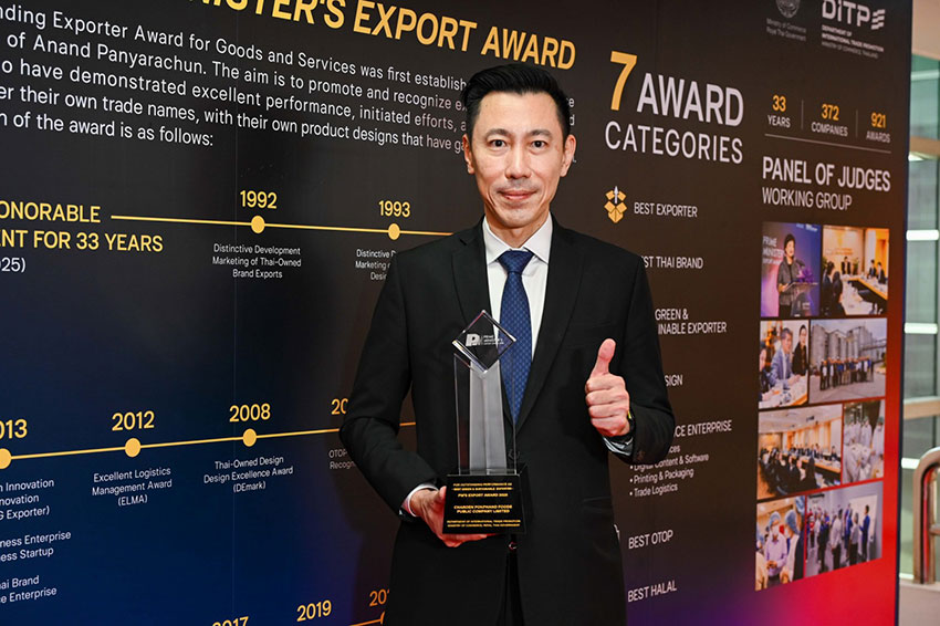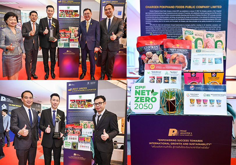 จากวิสัยทัศน์เป็น "ครัวของโลก" (Kitchen of the World) ที่มีพันธกิจสร้างความมั่นคงทางอาหารให้ผู้บริโภคทั่วโลก และสร้างธุรกิจเติบโตอย่างยั่งยืน มุ่งมั่นดำเนินงานด้วยความรับผิดชอบต่อสังคมและสิ่งแวดล้อม นำนวัตกรรมและเทคโนโลยีที่ทันสมัยมาใช้เพื่อเพิ่มประสิทธิภาพการผลิต ตลอดจนส่งเสริมการใช้พลังงานหมุนเวียน ใช้ทรัพยากรเกิดประโยชน์สูงสุด ทำให้ในปี 2568 บริษัท เจริญโภคภัณฑ์อาหาร  จำกัด (มหาชน) หรือ CPF  ได้รับ รางวัล Prime Minister’s Export Award (PM Award) ประเภทรางวัลผู้ส่งออกยอดเยี่ยมด้านความยั่งยืน (Best Green & Sustainable Exporter) จัดโดยกรมส่งเสริมการค้าระหว่างประเทศ (DITP)  โดยมี นายเอกปิยะ เอื้อวุฒิเกริก  กรรมการผู้จัดการ ธุรกิจการค้าระหว่างประเทศ  ซีพีเอฟ   รับรางวัล จากนายจตุพร บุรุษพัฒน์ รัฐมนตรีว่าการกระทรวงพาณิชย์   ณ ห้องบุรฉัตรไชยากร ชั้น 4 ตึกสำนักงานปลัดกระทรวงพาณิชย์