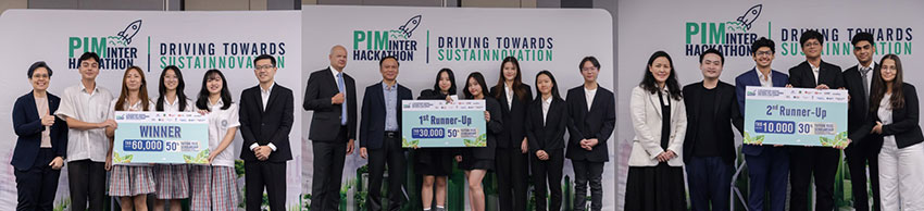 PIM International Hackathon 2024 มุ่งเน้นแนวคิดสร้างสรรค์แปลกใหม่และมีความน่าสนใจด้าน การปล่อยคาร์บอนสุทธิเป็นศูนย์ พลังงานหมุนเวียน การชดเชยคาร์บอน อาหารที่ปลอดภัย สุขภาพและความเป็นอยู่ที่ดี และเป็นส่วนหนึ่งในการค้นหาโซลูชันใหม่เพื่อพัฒนาคุณภาพชีวิตของคนและรักษาสิ่งแวดล้อมอย่างยั่งยืนจากพลังสมองคนรุ่นใหม่ พร้อมมีโอกาสพัฒนาเป็นโมเดลธุรกิจหรือนวัตกรรมที่สามารถคืนคุณค่าแก่สังคมในอนาคต ซึ่งได้รับผลตอบรับดีมากจากเยาวชนทั้งไทยและต่างชาติส่งแข่งขันถึง 75 ไอเดีย โดยทีมที่ชนะเลิศจากการตัดสินของคณะกรรมการทรงคุณวุฒิ ได้รับรางวัลและทุนการศึกษาหลักสูตรบริหารธุรกิจบัณฑิต สาขาวิชาการเป็นผู้ประกอบการธุรกิจสมัยใหม่ หลักสูตรนานาชาติ (iMBE) Bachelor of Business Administration Program in Modern Business Entrepreneurship (International Program) และ หลักสูตรบริหารธุรกิจมหาบัณฑิต (ธุรกิจระหว่างประเทศ) หลักสูตรนานาชาติ Master of Business Administration Program in International Business (iMBA) รวมมูลค่ากว่า 200,000 บาท