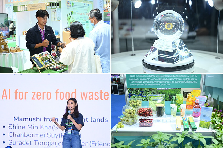 นอกจากนี้ ZONE F: SCIENCE FOR FUTURE THAILAND ยังมีการแสดงสถานีดาวเทียมจำลอง โดยนำเสนอ ‘แบบจำลองสถานีอวกาศขนาดเสมือนจริง’ เป็นโครงสร้างพื้นฐานด้านอวกาศขนาดใหญ่ที่ใช้เป็นฐานปฏิบัติการสำรวจ ทดลอง และวิจัยในอวกาศ แบบจำลองนี้มีวัตถุประสงค์เพื่อแสดงถึงความสำเร็จด้านเทคโนโลยีอวกาศ สร้างแรงบันดาลใจให้ประชาชนโดยเฉพาะเยาวชน และเสริมสร้างความรู้ความเข้าใจด้านเทคโนโลยีอวกาศ อีกทั้งยังมีกิจกรรมพิเศษ Special Talk: ร่วมพูดคุยกับทีมผู้สร้างภาพยนตร์ URANUS 2324 ซึ่งจะจัดขึ้นในวันเสาร์ที่ 27 กรกฎาคม 2567 เป็นโอกาสดีที่จะได้เรียนรู้เบื้องหลังการสร้างภาพยนตร์และแลกเปลี่ยนความคิดเห็นกับทีมงานมืออาชีพ ตลอดจนมีการนำเสนอแบบจำลองดาวเทียม Theos2 ซึ่งเป็นดาวเทียมสำรวจทรัพยากรธรรมชาติรุ่นล่าสุดของไทย เพื่อให้ผู้เข้าชมได้เห็นถึงความก้าวหน้าด้านเทคโนโลยีอวกาศของประเทศ แบบจำลองนี้แสดงให้เห็นถึงศักยภาพในการสำรวจและติดตามทรัพยากรธรรมชาติของไทย ซึ่งจะช่วยในการวางแผนและบริหารจัดการทรัพยากรได้อย่างมีประสิทธิภาพมากขึ้น ถือเป็นก้าวสำคัญของการพัฒนาเทคโนโลยีอวกาศของประเทศไทย ยิ่งไปกว่านั้นมีการนำ ‘ดินดวงจันทร์จากยานฉางเอ๋อ 5’ มาจัดแสดงในประเทศไทยเป็นครั้งแรก และยังเป็นเป็นครั้งแรกที่นำออกมาจัดแสดงนอกประเทศจีน แสดงให้เห็นถึงความสัมพันธ์อันแน่นแฟ้นระหว่างไทย-จีน ที่มีมาอย่างยาวนาน โดยกิจกรรมนี้ได้แสดงอุปกรณ์ปฏิบัติภารกิจวิทยาศาสตร์ของไทยที่จะติดตั้งบนยานฉางเอ๋อ 7 ชื่อ MATCH เพื่อตรวจวัดอนุภาคพลังงานสูงในอวกาศ รวมถึงยังจัดแสดงผลงานการพัฒนาเทคโนโลยีและวิศวกรรมขั้นสูงด้านต่าง ๆ โดยใช้โจทย์ทางดาราศาสตร์ เพื่อกระตุ้นความสนใจด้านวิทยาศาสตร์ เทคโนโลยี และนวัตกรรมของคนไทยด้วยเช่นกัน อีกหนึ่งนิทรรศการที่โดดเด่นคือ ‘Hub of Talents and Hub of Knowledge For All’ นำเสนอนวัตกรรมและผลิตภัณฑ์หลากหลาย ได้แก่ 1) Agricultural: เทคโนโลยีเกษตรและผลิตภัณฑ์มูลค่าสูง 2) Economy: นวัตกรรมเศรษฐกิจสร้างสรรค์ 3) Environmental: เทคโนโลยีรักษาสิ่งแวดล้อมและพลังงานสะอาด 4) Future Tech: เทคโนโลยีล้ำสมัยสำหรับอนาคต 5) Health: นวัตกรรมการแพทย์และสุขภาพ 6) Society: งานวิจัยเพื่อสังคมปลอดภัยและน่าอยู่ แสดงให้เห็นถึงความก้าวหน้าทางวิทยาศาสตร์และเทคโนโลยีที่ตอบโจทย์อนาคตอย่างเป็นรูปธรรม ส่วนสุดท้ายคือ นิทรรศการ ‘Irradiation for Sustainable Future’ ที่นำเสนอผลงานวิจัยด้านเทคโนโลยีการฉายรังสีใน 4 ด้านหลัก ได้แก่ 1) อุตสาหกรรมการแพทย์: การฆ่าเชื้อ วัสดุทางการแพทย์ และผลิตภัณฑ์เพื่อสุขภาพ 2) อุตสาหกรรมเกษตรและอาหาร: การยกระดับคุณภาพอาหารและวัสดุจากธรรมชาต