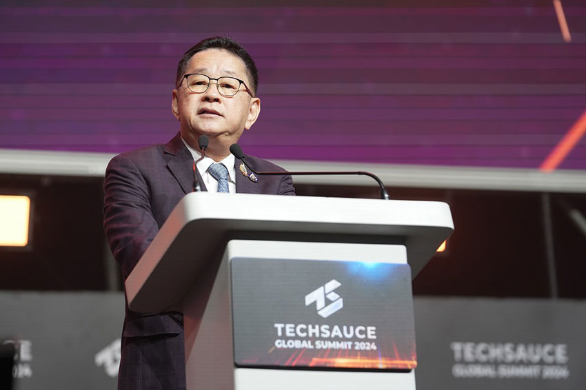 นายประเสริฐ จันทรรวงทอง รัฐมนตรีว่าการกระทรวงดิจิทัลเพื่อเศรษฐกิจและสังคม (กระทรวงดีอี) เป็นประธานเปิดงานสัมมนาและจัดแสดงเทคโนโลยีและนวัตกรรมดิจิทัลที่ใหญ่ที่สุดในเอเชียตะวันออกเฉียงใต้ TECHSAUCE GLOBAL SUMMIT 2024 ที่มาพร้อมแนวคิด The World of Tomorrow with AI โดยมี ผศ.ดร.ณัฐพล นิมมานพัชรินทร์ ผู้อำนวยการใหญ่ สำนักงานส่งเสริมเศรษฐกิจดิจิทัล หรือ ดีป้า นางสาวอรนุช เลิศสุวรรณกิจ ประธานเจ้าหน้าที่บริหารและผู้ร่วมก่อตั้ง บริษัท เทคซอส มีเดีย จำกัด ผู้บริหารจากหน่วยงานภาครัฐ ภาคเอกชน สถาบันการศึกษา ดิจิทัลสตาร์ทอัพไทยและต่างประเทศ รวมถึงผู้ที่สนใจร่วมภายในงานเป็นจำนวนมาก ณ ศูนย์การประชุมแห่งชาติสิริกิติ์