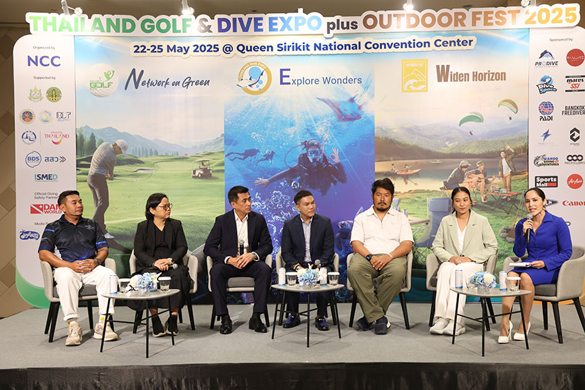 เอ็น.ซี.ซี. ผนึกกำลังภาครัฐ และเอกชน จัดงาน THAILAND GOLF & DIVE EXPO plus OUTDOOR FEST 2025 มหกรรมกีฬากอล์ฟ – ดำน้ำ – กิจกรรมกลางแจ้ง ใหญ่สุดในอาเซียน ระดมผู้ประกอบการกว่า 590 คูหา จำหน่ายสินค้าในราคาสุดพิเศษ คาดจะมีผู้เข้าร่วมงานทั้งชาวไทยและต่างชาติกว่า 59,000 คน ด้าน ททท. หนุนการท่องเที่ยวด้านกีฬา ยกระดับการท่องเที่ยวสูงพรีเมียม คาดปี 68 ธุรกิจดำน้ำมูลค่าทะลุ 8.5 พันล้านบาท โตเฉลี่ย 12% ต่อปี