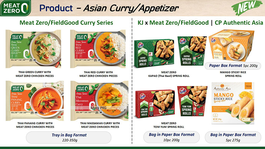 MEAT ZERO นำเสนอทางเลือกใหม่ของโปรตีนจากพืช เช่น พะแนงโปรตีนทางเลือก, Mushroom Gyoza กลิ่นซอสญี่ปุ่นหอมกรุ่น และ เกี๊ยวซ่าแกงเขียวหวานฟิวชันไทย-ญี่ปุ่น ซึ่งคว้ารางวัล Best of Taste ปี 2024