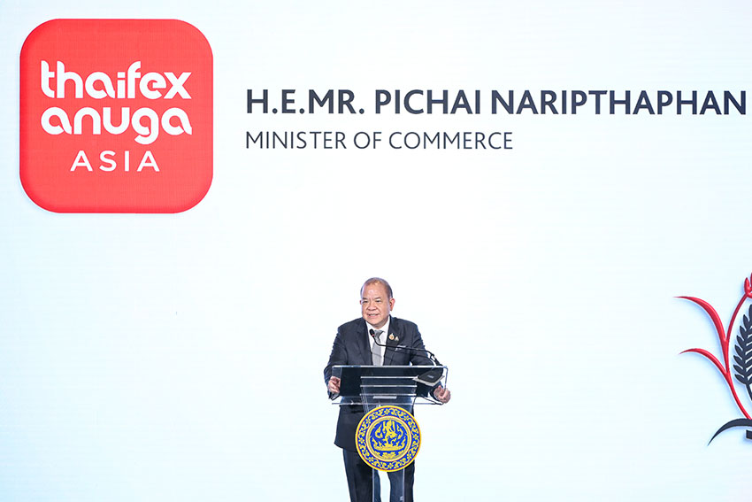 วันที่ 27 พฤษภาคม 2568 ณ ศูนย์แสดงสินค้าและการประชุมอิมแพ็ค เมืองทองธานี นายพิชัย นริพทะพันธุ์ รัฐมนตรีว่าการกระทรวงพาณิชย์ เป็นประธานเปิดงาน THAIFEX – ANUGA ASIA 2025” งานแสดงสินค้าอาหารและเครื่องดื่มที่ยิ่งใหญ่และครบวงจรที่สุดแห่งเอเชีย เปิดโอกาสให้ผู้ประกอบการได้พบกับนวัตกรรมอาหารจากทั่วโลก สร้างโอกาสเจรจาการค้า และตอกย้ำบทบาทของไทยในฐานะผู้นำด้านอุตสาหกรรมอาหารโลกภายใต้นโยบาย “ครัวไทยสู่ครัวโลก” จัดขึ้นภายใต้ความร่วมมือของกรมส่งเสริมการค้าระหว่างประเทศ กระทรวงพาณิชย์ หอการค้าไทย และโคโลญเมสเซ่ เยอรมนี