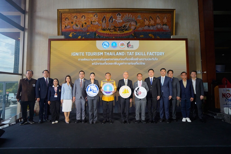 กระทรวงการท่องเที่ยวและกีฬา โดย การท่องเที่ยวแห่งประเทศไทย (ททท.) ร่วมกับกระทรวงแรงงาน และสภาอุตสาหกรรมท่องเที่ยวแห่งประเทศไทย จัดงานแถลงข่าวเปิดกิจกรรม Ignite Tourism Thailand : TAT Skill Factory ซึ่งจะจัดขึ้นในวันที่ 15 - 16 มิถุนายน 2567 ณ โรงแรมแอมบาสซาเดอร์ กรุงเทพมหานคร ภายใต้นโยบาย “IGNITE TOURISM THAILAND” มุ่งเสริมสร้างศักยภาพและทักษะต่าง ๆ แก่บุคลากรในอุตสาหกรรมท่องเที่ยวด้วยหัวใจสำคัญของการบริการที่เป็นเลิศ เพื่อสร้างความประทับใจและร่วมผลักดันประเทศไทยเป็น Tourism Hub จุดหมายปลายทางของนักท่องเที่ยวทั่วโลก โดยมีนายเสริมศักดิ์ พงษ์พานิช รัฐมนตรีว่าการกระทรวงการท่องเที่ยวและกีฬา นายพิพัฒน์ รัชกิจประการ รัฐมนตรีว่าการกระทรวงแรงงาน นายชำนาญ ศรีสวัสดิ์ ประธานสภาอุตสาหกรรมท่องเที่ยวแห่งประเทศไทย และนางสาวฐาปนีย์ เกียรติไพบูลย์ ผู้ว่าการ ททท. ให้เกียรติร่วมแถลงข่าว ณ ห้องโถงธนะรัชต์ อาคาร ททท. ซึ่งคาดว่ากิจกรรมดังกล่าวจะมีบุคลากรในอุตสาหกรรมการท่องเที่ยวในด้านต่าง ๆ เข้าร่วมงานไม่ต่ำกว่า 300 คน