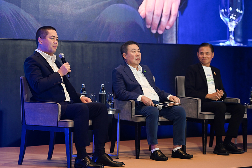 สำหรับการเสวนา “เส้นทางการเปลี่ยนผ่านองค์กรสู่ความยั่งยืน โอกาสของธุรกิจไทย” นายสมิทธิพร เศรษฐปราโมทย์ ประธานเจ้าหน้าที่บริหาร บริษัท บ้านปู เน็กซ์ จำกัด ยอมรับว่า Climate Change สำคัญและส่งผลกระทบกับหลากหลายธุรกิจ โดยบ้านปู เน็กซ์ ดำเนินงานที่เกี่ยวข้องกับเทคโนโลยีพลังงานสะอาด ไม่ว่าจะเป็นธุรกิจพลังงานหมุนเวียน ธุรกิจแบตเตอรี่ ธุรกิจซื้อขายไฟฟ้า ธุรกิจอี-โมบิลิตี้ และธุรกิจจัดการพลังงาน โดยมุ่งมั่นเป็นองค์กรสีเขียว และพร้อมเป็นที่ปรึกษาด้าน Net Zero Solutions ให้แก่ผู้ประกอบการสามารถเปลี่ยนผ่านสู่ธุรกิจสีเขียวได้อย่างครบวงจร โดยจับมือกับพาร์ทเนอร์ที่มีนวัตกรรมและความเชี่ยวชาญระดับโลกที่จะนำเทคโนโลยีและ AI มาใช้ เพื่อตอบโจทย์ความต้องการของลูกค้าได้ตั้งแต่ต้นน้ำไปจนถึงปลายน้ำ และย้ำว่าผู้ประกอบการต้องเร่งปรับเปลี่ยนวิธีในการทำธุรกิจ เพราะบริษัทที่มีการปล่อยก๊าซเรือนกระจกจำนวนมากจะเสียปรียบในการแข่งขันด้านธุรกิจและการตลาดในอนาคต