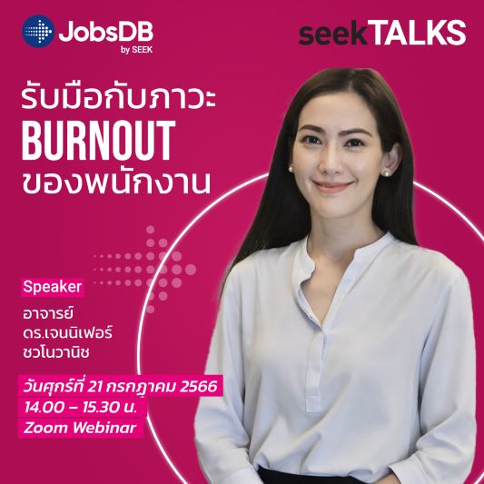 จากภาวะ Burnout ที่มีทิศทางสูงขึ้นเรื่อยๆ นี้ ทาง JobsDB by SEEK แพลตฟอร์มหางานชั้นนำของเอเชีย ภายใต้กลุ่มบริษัท SEEK (ซีค) จึงเล็งเห็นถึงความเร่งด่วนที่ทุกองค์กรต้องหันมาสนใจในสุขภาพของพนักงานและป้องกันก่อนที่จะเกิดภาวะหมดไฟแก่พนักงานในองค์กร จึงได้จัดงานสัมมนาออนไลน์ seekTALKS “ช่วยองค์กรรับมือกับภาวะ Burnout ของพนักงาน”