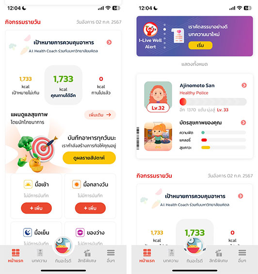 1. AI Personal Health: คำนวณแคลอรี่ นับก้าวเดิน ทำอาหาร ออกกำลังกาย การประเมินสุขภาพกายและสุขภาพใจ ที่เชื่อมโยงกับภารกิจของบริษัท