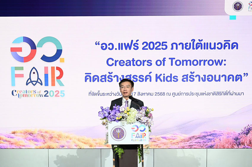 ศาสตราจารย์ ดร. ศุภชัย ปทุมนากุล ปลัดกระทรวงการอุดมศึกษา วิทยาศาสตร์ วิจัยและนวัตกรรม (อว.) แถลงข่าวความสำเร็จการจัดงาน อว.แฟร์ 2025: SCI POWER FOR FUTURE THAILAND” ภายใต้แนวคิด Creators of Tomorrow: คิดสร้างสรรค์ Kids สร้างอนาคต ที่เปิดให้ประชาชนเข้าชมฟรีและร่วมสัมผัสประสบการณ์สุดล้ำด้านวิทยาศาสตร์ วิจัย เทคโนโลยีและนวัตกรรม ตั้งแต่วันที่ 9-17 สิงหาคม 2568 ณ ศูนย์การประชุมแห่งชาติสิริกิติ์ ซึ่งตลอด 9 วันของการจัดงาน มีผู้เข้าร่วมกิจกรรมรวมกว่า 720,000 ราย แบ่งเป็น On-site กว่า 222,000 ราย และ Online กว่า 498,000 ราย สร้างผลกระทบเชิงเศรษฐกิจและสังคมอย่างมีนัยสำคัญ โดยมี ศ.ดร.ศุภชัย ปทุมนากุล ปลัดกระทรวง อว. และผู้บริหารกระทรวง อว. เข้าร่วม ณ ห้องแถลงข่าว ชั้น 1 อาคารพระจอมเกล้า สำนักงานปลัดกระทรวงการอุดมศึกษา วิทยาศาสตร์ วิจัยและนวัตกรรม