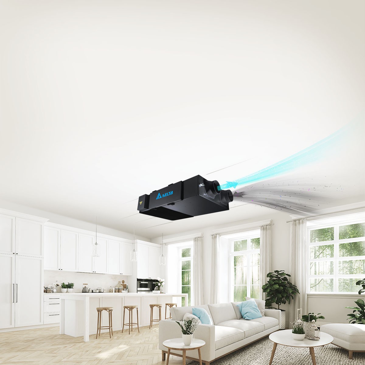 พัดลมระบายอากาศ: เดลต้าได้นำมอเตอร์ DC brushless ที่ทันสมัยมาใช้กับพัดลมระบายอากาศ เพื่อให้ได้ประสิทธิภาพสูงสุดทั้งในด้านการประหยัดพลังงานและการทำงานที่เงียบเป็นพิเศษ พัดลมเหล่านี้ช่วยระบายอากาศภายในได้อย่างมีประสิทธิภาพ ซึ่งมีเสียงที่เบากว่าพัดลมทั่วไปนอกจากความเงียบแล้ว พัดลมระบายอากาศของเดลต้ายังช่วยประหยัดพลังงานได้มากถึง 70% ทำให้ผู้ใช้งานได้รับทั้งความสะดวกสบายและยังช่วยประหยัดค่าใช้จ่ายได้อีกด้วย