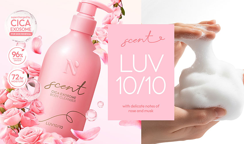 เลิฟ 10/10 โรส มัสก์ กลิ่นกุหลาบสุดคลาสสิค พร้อมเสริมมิติหวานนุ่มแบบแป้งจากมัสก์ ช่วยฟื้นบำรุงผิวให้ดูอ่อนกว่าวัย