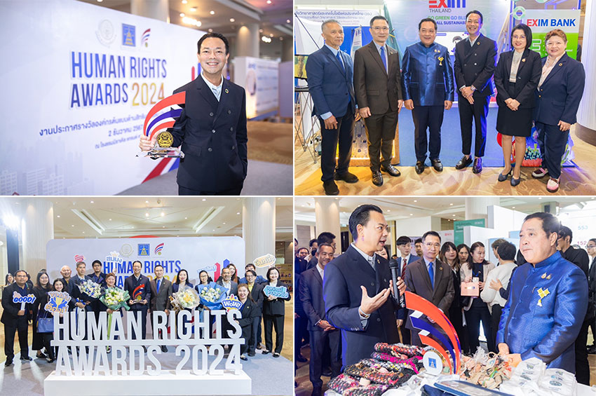 ดร.รักษ์ วรกิจโภคาทร กรรมการผู้จัดการ ธนาคารเพื่อการส่งออกและนำเข้าแห่งประเทศไทย (EXIM BANK) รับรางวัล “องค์กรต้นแบบด้านสิทธิมนุษยชน ระดับดีเด่น ประจำปี 2567” ประเภทองค์กรรัฐวิสาหกิจ จากพันตำรวจเอกทวี สอดส่อง รัฐมนตรีว่าการกระทรวงยุติธรรม ในงานประกาศรางวัลองค์กรต้นแบบด้านสิทธิมนุษยชน ประจำปี 2567 จัดโดยกรมคุ้มครองสิทธิและเสรีภาพ กระทรวงยุติธรรม เน้นย้ำการดำเนินธุรกิจอย่างเคารพสิทธิมนุษยชนของ EXIM BANK อย่างต่อเนื่อง 2 ปีซ้อน ณ โรงแรมมิราเคิล แกรนด์ คอนเวนชั่น กรุงเทพฯ เมื่อวันที่ 2 ธันวาคม 2567