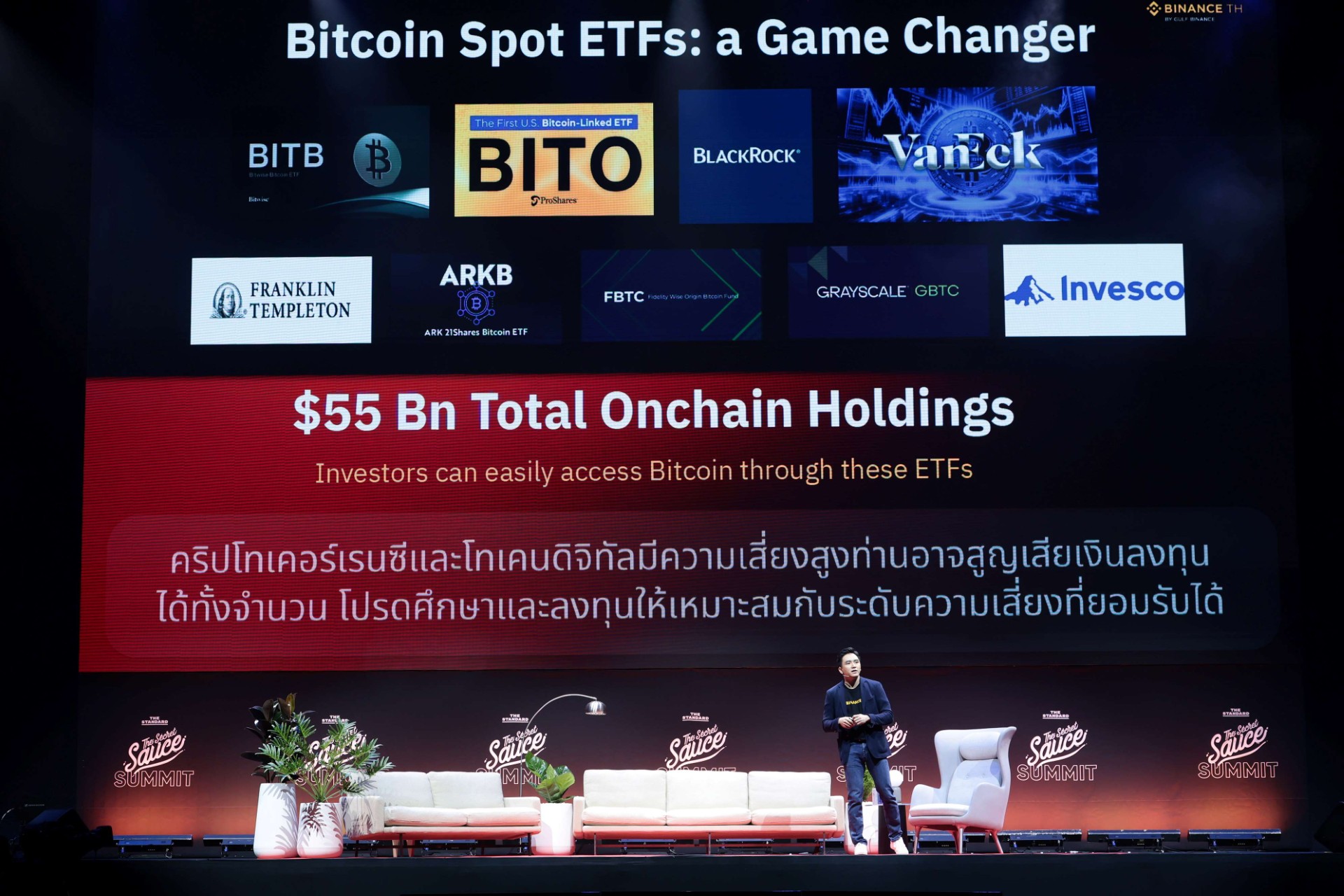 ไบแนนซ์ ทีเอช บาย กัลฟ์ ไบแนนซ์ (BINANCE TH by Gulf Binance) บริษัทร่วมทุนระหว่าง ไบแนนซ์ แคปปิตอล แมเนจเมนท์ จำกัด บริษัทภายในเครือของไบแนนซ์ แพลตฟอร์มที่มีปริมาณการแลกเปลี่ยนสินทรัพย์ดิจิทัลที่ใหญ่ที่สุดในโลก และ บริษัท กัลฟ์ อินโนวา จำกัด พาส่องเทรนด์โลกสินทรัพย์ดิจิทัล โดยนายนิรันดร์ ฟูวัฒนานุกูล ประธานเจ้าหน้าที่บริหาร บริษัท กัลฟ์ ไบแนนซ์ จำกัด ในหัวข้อ ‘คว้าโอกาสในโลกบิทคอยน์ ไปทางไหน’ ในงาน The Secret Sauce Summit 2024 มุ่งเจาะลึก 3 สัญญาณการเติบโตของบิทคอยน์ ทั้งในกลุ่มนักลงทุนระดับย่อยและนักลงทุนสถาบัน พร้อมเผยเทคนิคการเลือกแพลตฟอร์มซื้อขายสินทรัพย์ดิจิทัลที่มีความปลอดภัย เพื่อสร้างความมั่นใจในการลงทุนที่มีความผันผวนและเปลี่ยนแปลงอย่างรวดเร็ว