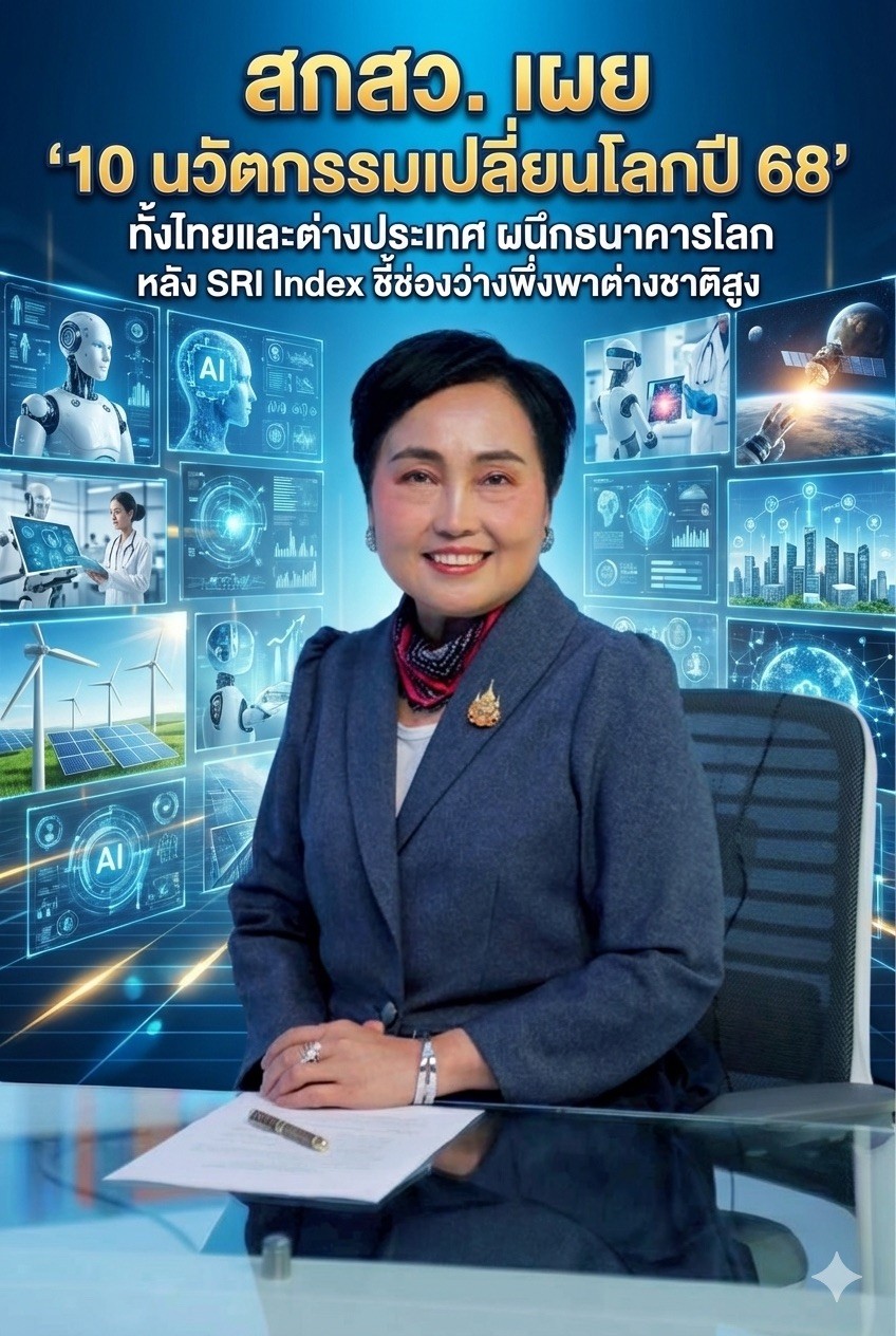 สำนักงานคณะกรรมการส่งเสริมวิทยาศาสตร์ วิจัยและนวัตกรรม (สกสว.) ร่วมกับธนาคารโลก (World Bank) แถลงกลยุทธ์สำคัญในการขับเคลื่อนประเทศไทยผ่านรายงาน "10 เทคโนโลยีระดับโลกและระดับประเทศที่มีอิทธิพลต่อการเปลี่ยนแปลงสำคัญในปี 2568" โดยมุ่งเน้นการปฏิรูปโครงสร้างเศรษฐกิจไทยให้ก้าวข้ามการเป็นเพียงผู้ซื้อเทคโนโลยีสู่การเป็นผู้สร้างสรรค์นวัตกรรม หลังผลสำรวจดัชนีชี้วัดนวัตกรรมพบจุดอ่อนสำคัญในการพึ่งพาเทคโนโลยีต่างชาติที่ยังคงสูงต่อเนื่อง พร้อมเดินหน้าโครงการ “การทบทวนประสิทธิผลเชิงนโยบายด้านวิทยาศาสตร์ วิจัย และนวัตกรรม (PER) ระยะที่ 2” เพื่อเพิ่มประสิทธิภาพการลงทุนและแก้ปัญหาช่องว่างด้านทักษะบุคลากร รวมถึงการเข้าถึงแหล่งเงินทุนของภาคเอกชน เพื่อขับเคลื่อนไทยสู่ผู้นำด้านนวัตกรรมในระดับภูมิภาค