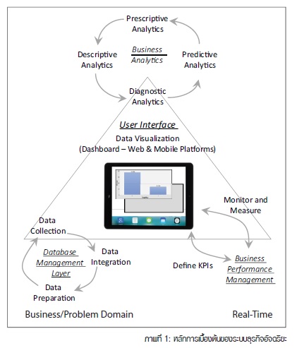 โลกของการแข่งขันทางธุรกิจในปัจจุบันเป็นโลกของข้อมูลข่าวสารที่มีการเปลี่ยนแปลงตลอดเวลา หลายๆ องค์กรจึงต้องมีการปรับตัวและปรับเปลี่ยนวิธีการคิดและวัฒนธรรมองค์กร โดยประยุกต์นำระบบธุรกิจอัจฉริยะเข้ามาช่วยในแต่ละขั้นตอนของการวางแผนกลยุทธ์ทั้งในระยะสั้นและระยะยาวขององค์กร รวมถึงวิธีการและขั้นตอนต่างๆ ของกระบวนการตัดสินใจเพื่อให้ตอบสนองต่อปรากฏการณ์ของ Big Data ได้อย่างเหมาะสมและรวดเร็ว ระบบธุรกิจอัจฉริยะ (Business Intelligence) มีพื้นฐานมาจากระบบสนับสนุนการตัดสินใจ (Decision Support Systems) แม้ว่าเทคโนโลยีในปัจจุบันจะเปลี่ยนแปลงไปทั้งในเรื่องของการจัดการข้อมูล Big Data และการเชื่อมต่อฐานข้อมูลที่เร็วขึ้น การสร้างแบบจำลองหรือโมเดลที่ซับซ้อนขึ้น ซึ่งนักวิเคราะห์น่าจะได้เรียนรู้ถึงระบบเอไอ (AI: Artificial Intelligence) ซึ่งเป็นศาสตร์แขนงหนึ่งของวิทยาศาสตร์คอมพิวเตอร์ หรือการเชื่อมต่อของผู้ใช้งานบนเว็บไซต์และมือถือ เป็นต้น แต่หลักการของระบบธุรกิจอัจฉริยะยังคงเหมือนเดิมซึ่งมาจากองค์ประกอบพื้นฐานหลัก 4 องค์ประกอบ คือ